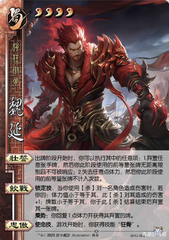 势魏延,称号是狷傲狂骨,四血四个形态。没错,这位武将会根据不同形态获得不同技能,分别是初始形态、觉醒形态、使命成功、使命失败。我们就根据他的形态,来解析他的技能。